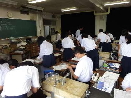 3時間目の3年2組での理科の授業では、「太陽の1日の動きと地球の自転との関係」について、透明半球を使っての実験を行います。これに先立ち実験道具を各自作成。観測の仕方を確認しました。
