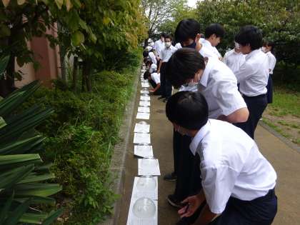後日、晴れた日に1時間ごとの太陽の動きの観測と記録を行います。
