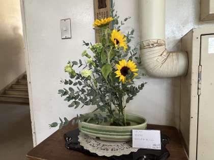 生け花教室で生けた花は、南校舎にも展示してあります。