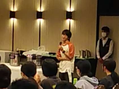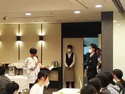 夕食のはじめに、3日間お世話になる宿舎の方にあいさつをしました。食事係のいただきますで食事開始です。