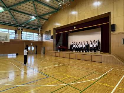 写真は3年1組の様子。気持ちはJ:COMホールでの本番さながらです!