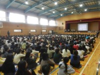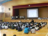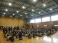 配膳を担当するのは上学年の子供たちです。三角巾やエプロンを付けます。普段の給食の配膳と同じ光景です。