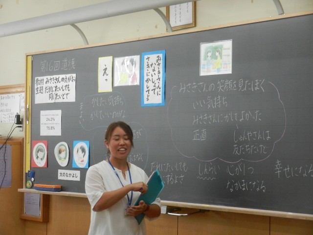 担任の先生の笑顔が、子供たちに安心感を与えます。互いの意見や考えを認め合う学級です。