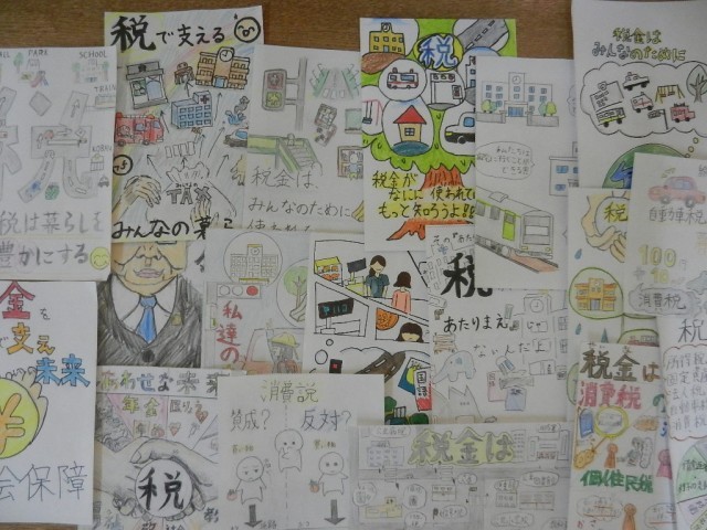 6年生は社会科で「税金」について学習しています。今回は、税金の理解をさらに深めるために絵はがきコンクールに応募することになりました。