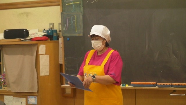 第七小学校の栄養士の先生が、教室を回りながら「市制施行記念日」の献立について説明をしました。