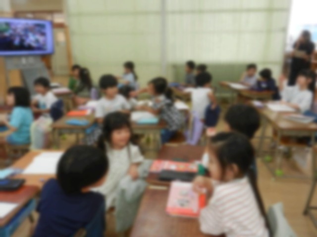 担任の先生は次々に写真を準備します。黒板に掲示します。子供たちは「まだあるの!」「すごい!」と、興味津々です。