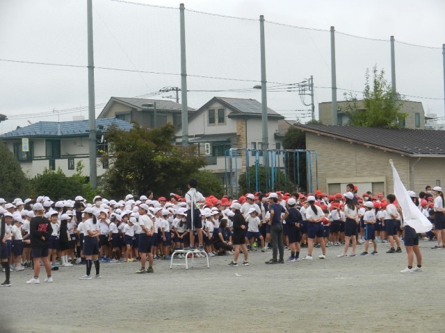 午後の応援合戦は、子供たちの自席で行います。応援団が並ぶ場所も変わります。