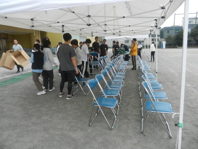 テントの中に椅子を置きます。本部席として係児童や来賓の方々が座ります。