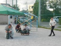 数名の先生方がすでに出勤し、最後の確認をしています。今日は運動会です。
