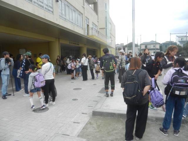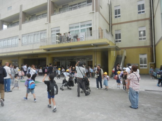 子供たちが帰ります。保護者の方々は子供たちと一緒に帰る方が多かったです。