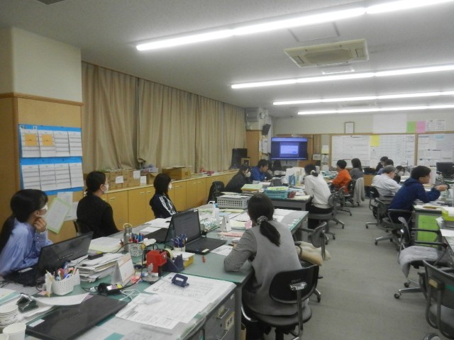 10月27日・月曜日、午後4時30分です。職員室の様子です。教員研修を行います。