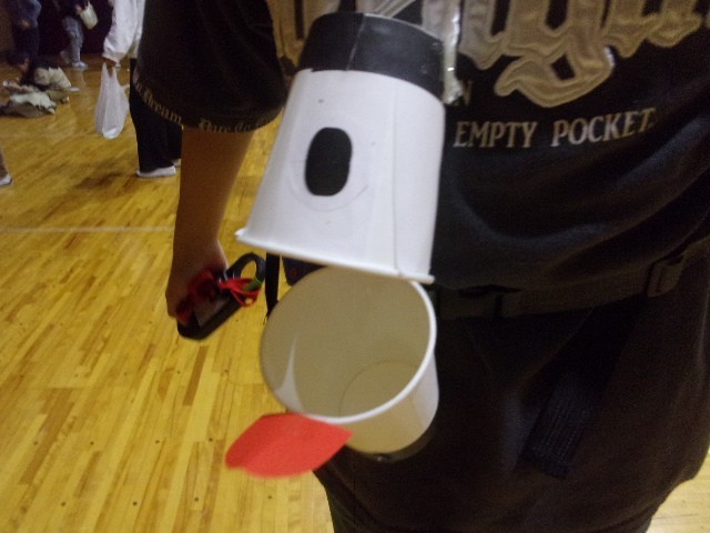 各グループが校舎内を歩いている間、体育館では「お化け作り」をしています。