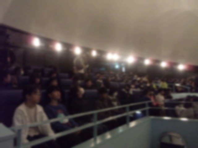 ドームの中に入ります。うす暗いです。ドームの真ん中にはプラネタリウムがあります。