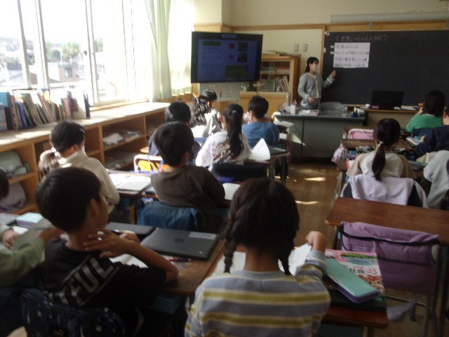 担任の先生は、大型液晶モニターを活用して子供たちに分かりやすく説明します。