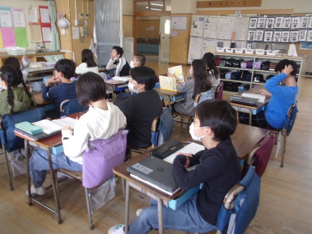 10月29日・水曜日、3校時です。4年生の教室の様子です。社会科の学習中です。