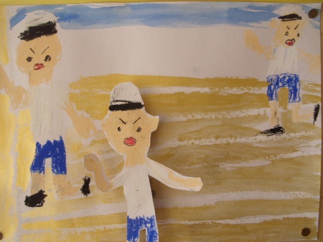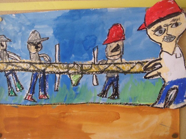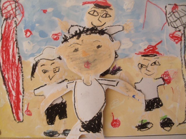 かけっこ(徒競走)。良くみるとコースの白線を表現しています。まさに運動会そのものです。