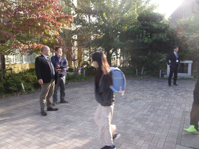 この日は、第七中学校の校長先生と第七中学校学校運営協議会会長が、あいさつ運動の様子をご覧になっていました。