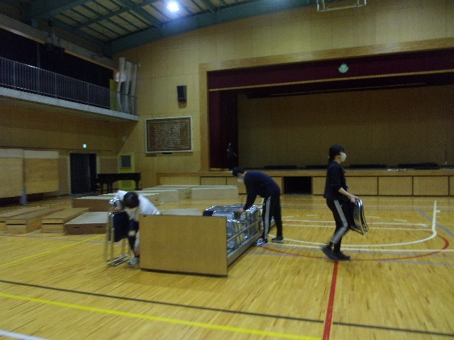 11月7日・金曜日、午後です。体育館の様子です。教職員が集まっています。