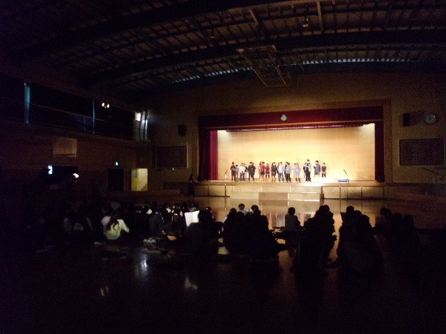 体育館のフロアー側の電灯を消すと、舞台だけが明るくなります。