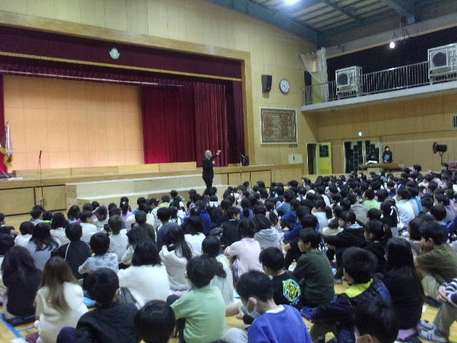 午前8時20分。全校児童が集まります。時間通りに始められます。素晴らしいです。