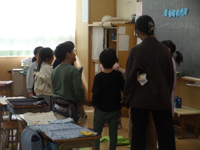 多目的室、各教室の前にあるオープンスペースを利用します。1年生のとっては小学校生活初めての学芸会になります。