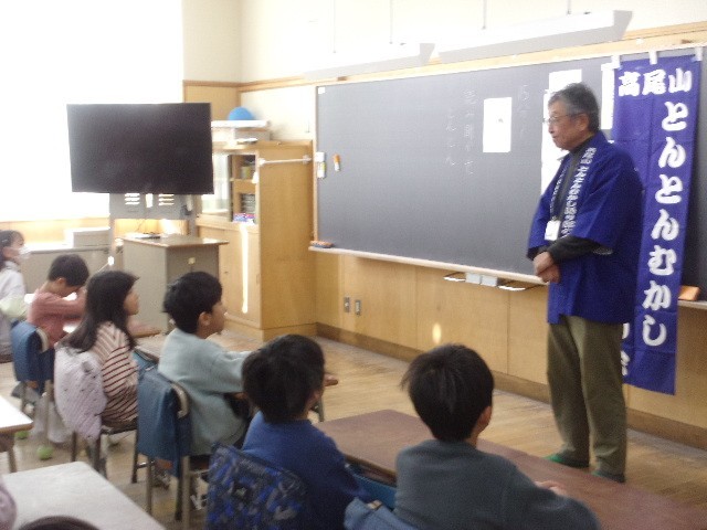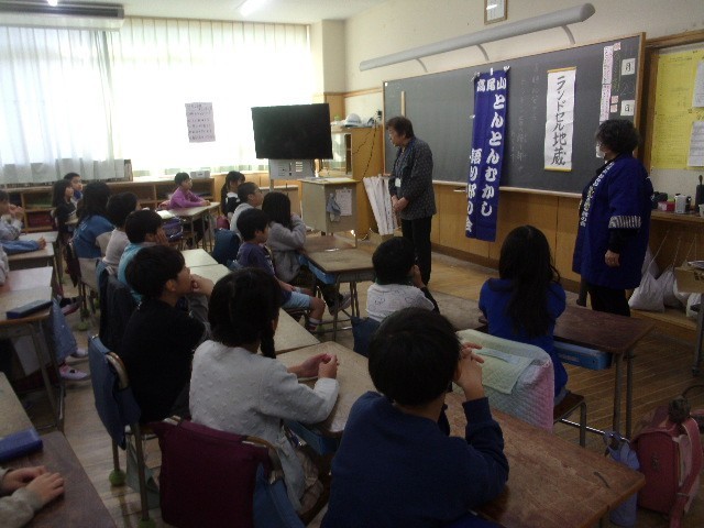 今朝は「とんとんむかし 語り部の会」の皆さんによる「昔語り」を行いました。3年生の子供たちが対象です。