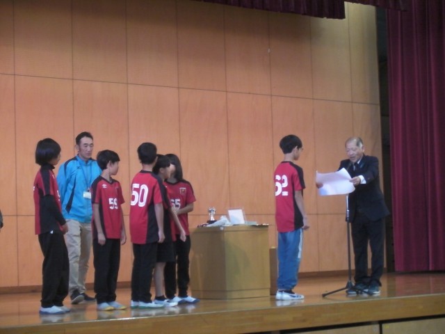 サッカー大会の表彰です。チームは2つの大会で優勝し、個人ではMVPを獲得しました。