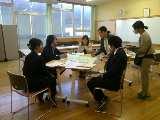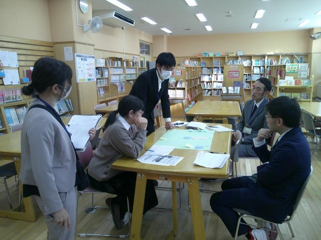 研究授業が終わり、研究協議会に移ります。先生方が5つのグループに分かれて協議を行いました。