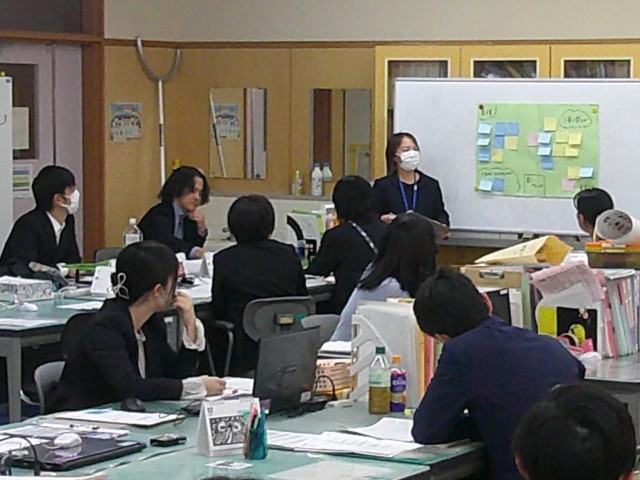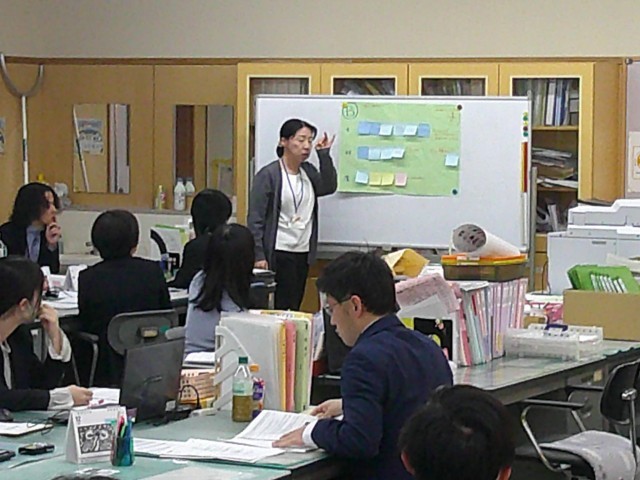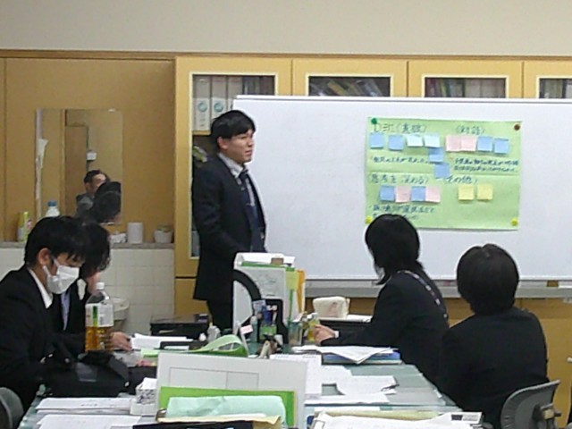 グループでの協議が終わると、職員室にて情報共有を行います。各グループからの発表です。
