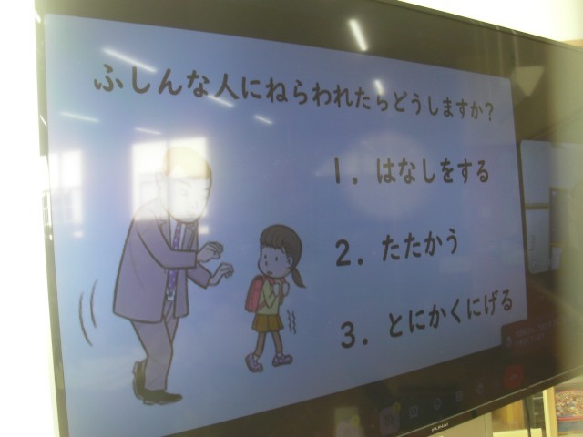 子供たちは映像を見ながら、オンラインの声を聞きながら、安全指導の話を理解します。
