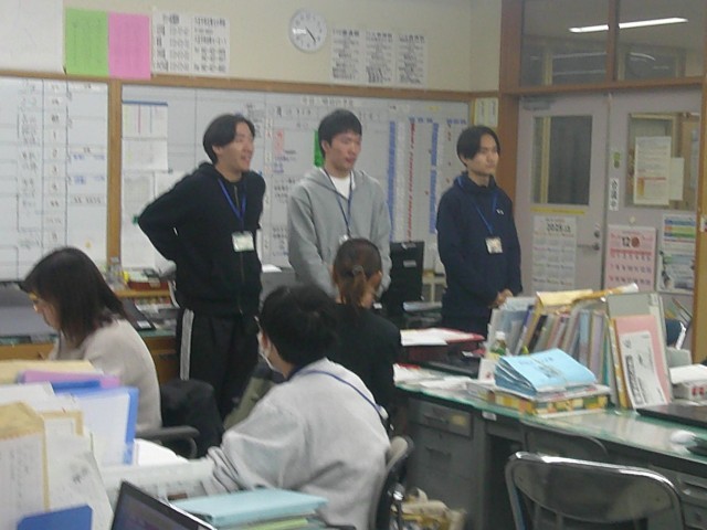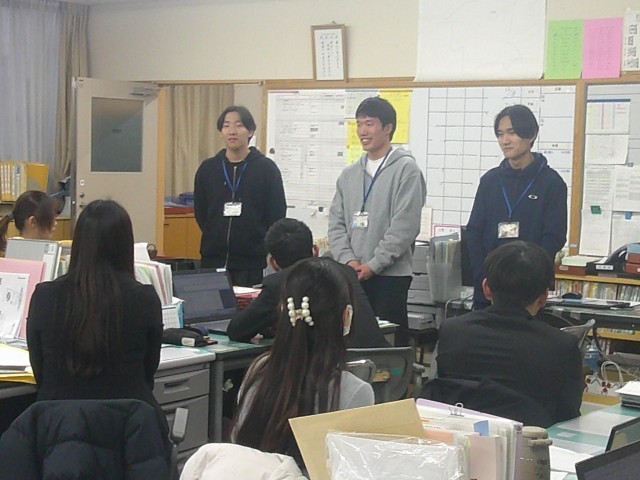 第2学年の担任の先生以外のも、多くの先生方が3名のインターンシップの大学生に信頼を寄せていました。