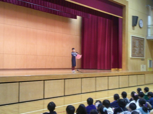 舞台の上で一人で発表できました。堂々と、落ち着いて発表できました。素晴らしいです。