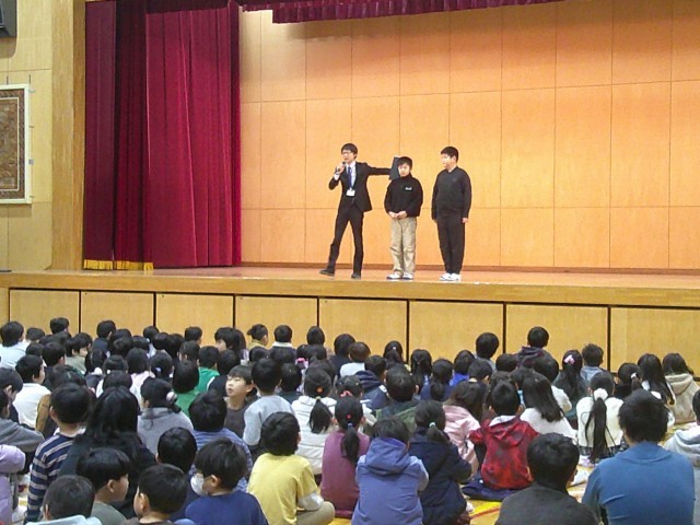 続いて、生活指導担当の先生が3学期の生活や1月の生活目標について話をしました。