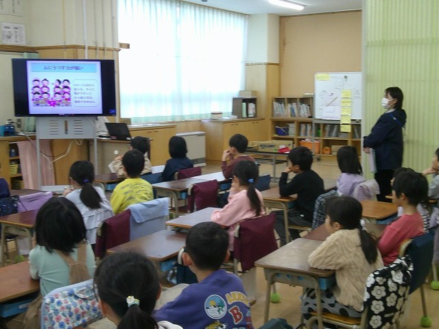 第七小学校では定期的に保健指導を行っています。季節に応じた体調管理について養護教諭が注意喚起をします。