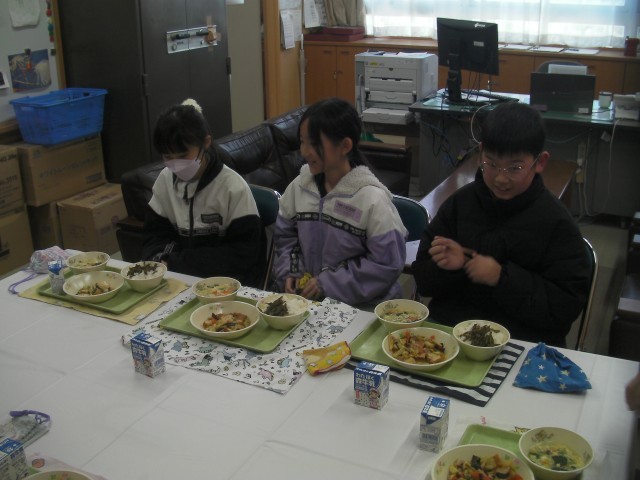 3学期の1月からは4年生の児童が校長室で会食を行っています。
