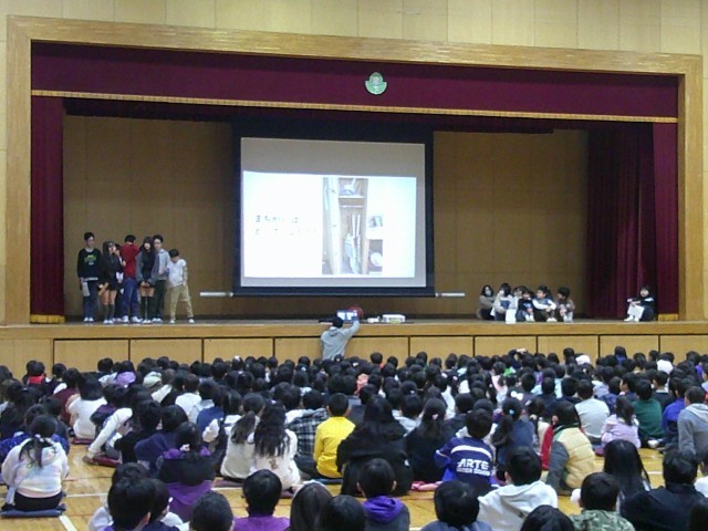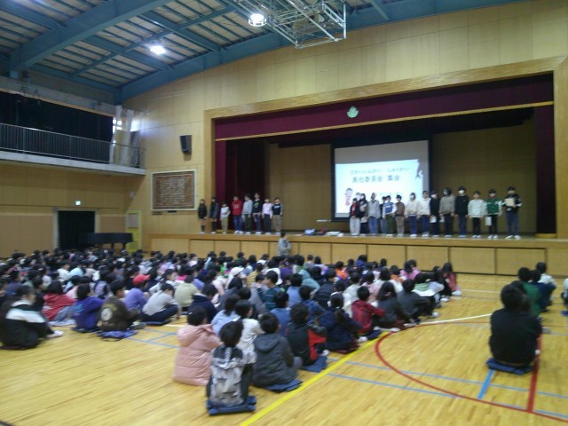 第七小学校では毎週木曜日(原則)に児童集会を行っています。今回は美化委員会による発表集会でした。