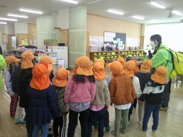 1月22日・木曜日、午後1時30分に近隣の保育園児が第七小学校にやってきました。かわいい園児たちが先生と一緒にやってきました。