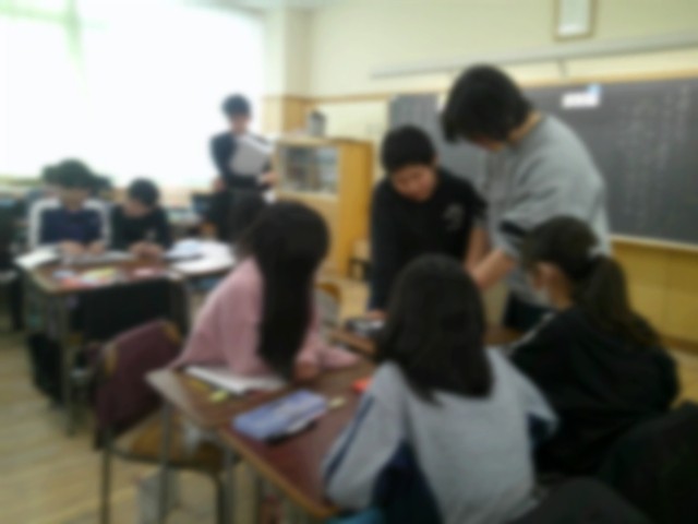 担任の先生は各グループを何度も何度も周ります。意見交流の内容を聞いたり、アドバイスをおくったりします。