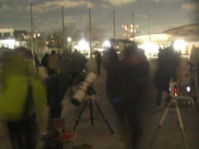 八王子天文同好会の方々に、説明をしていただきます。天体望遠鏡をのぞき込みます。