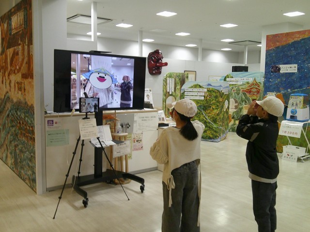 児童は興味津々の様子です。「はちはく」の入り口には、カメラの前に立つとキャラクターに変身する仕掛けがあります。面白いです。