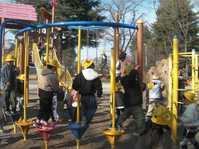 冬さがしの後は、公園で運動をします。ルールを守って、仲良く活動します。
