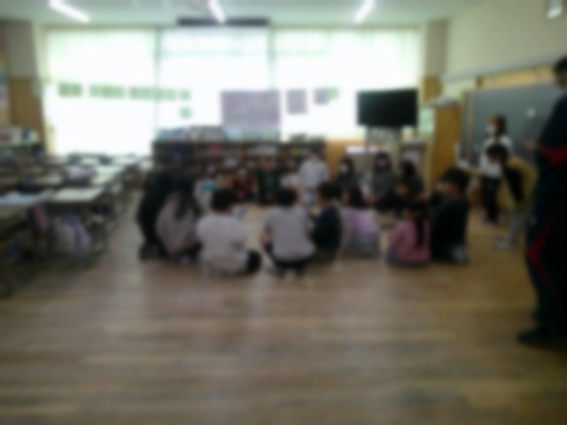 2月20日・金曜日、たてわり班感謝の会の様子です。たてわり班活動で世話になった6年生に感謝の気持ちを伝えます。