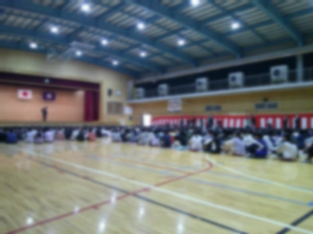 午前8時20分。体育館に全校児童が集まります。修了式が始まります。
