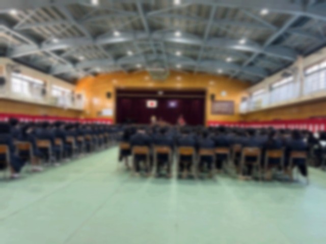 午前9時30分を過ぎました。第七中学校長を先頭に来賓が入場します。体育館には在校生が全員待機しています。