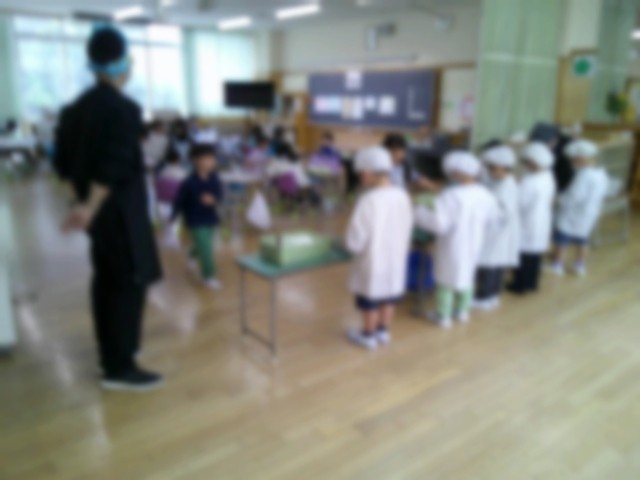 4月13日・月曜日、給食指導の時間です。この日から1年生の給食が始まりました。