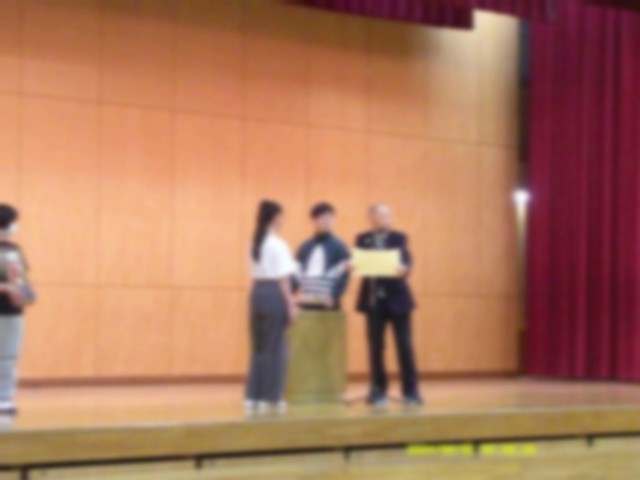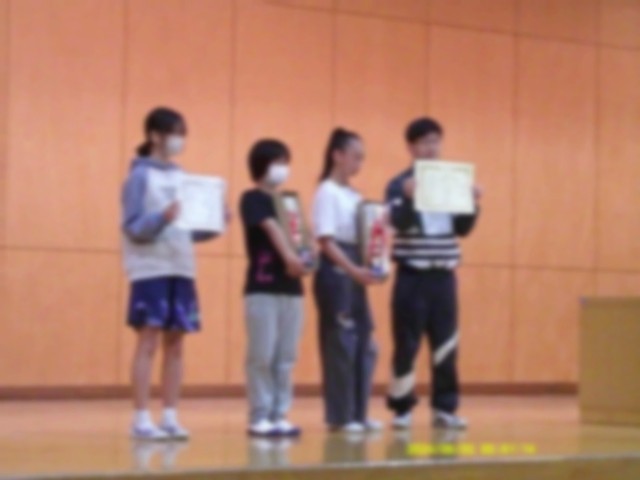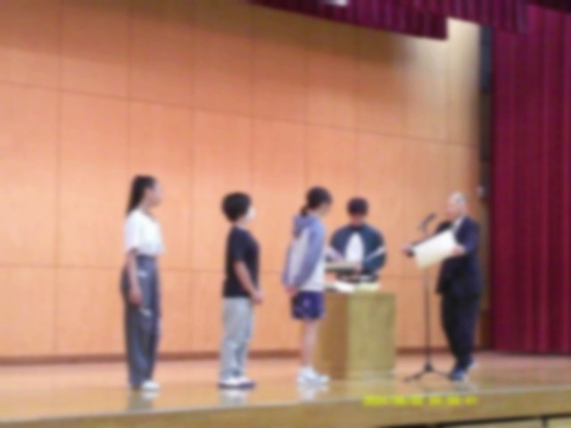 今日の全校朝会の最後は、表彰をしました。賞状とトロフィーを授与しました。