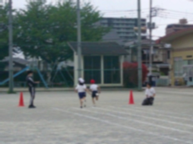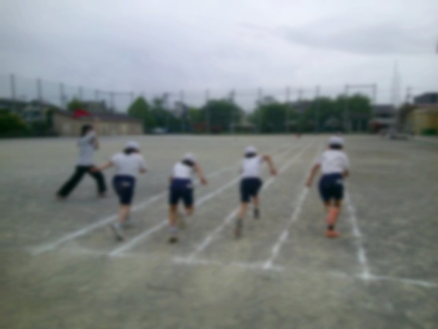 6月上旬に予定している体力テストに備えて、50m走の計時をしています。
