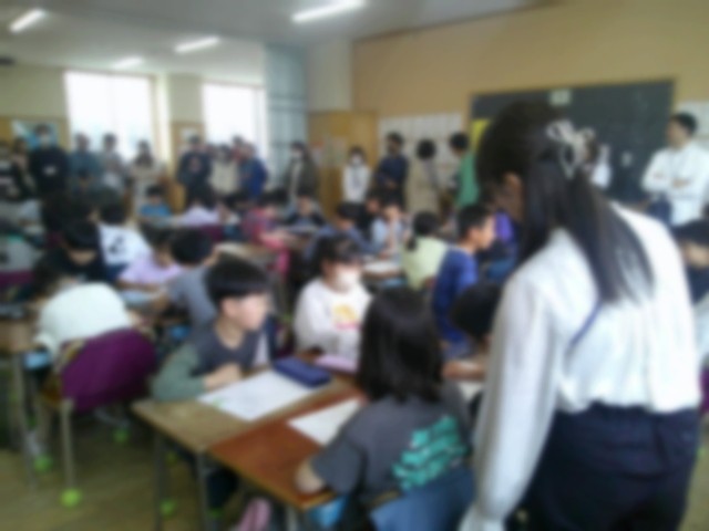 6年生も国語の授業でした。「3字以上の熟語の構成」です。6年生の子供たちも緊張気味に見えます。頑張れ!