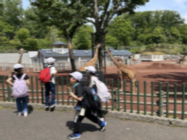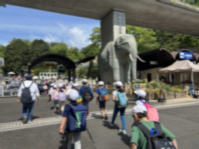 多摩動物公園では、グループで行動します。班長を中心に、仲良く、協力しながら歩きます。