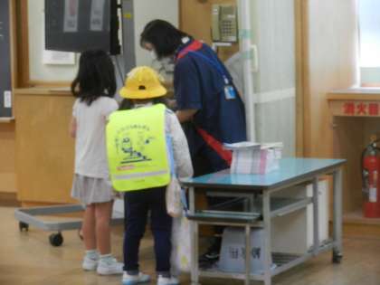 1年生にやさしく語りかけます。1年生の表情がやわらぎます。